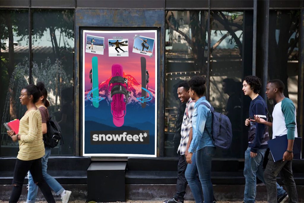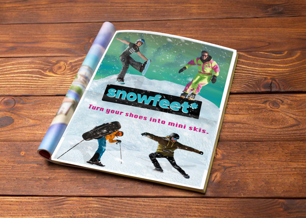 Advertisement & marketing campaign for Snowfeet. Included with a poster, magazine, & video.